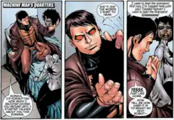 In Marvel NOW!, Machine Man appeared as an employee of Umbral Dynamics. Machine Man later appears as a member of Domino's incarnation of the Mercs for Money.[14]