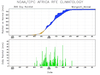 A diagram depicting the amount of rainfall in Mangochi from August 2007 to July 2008