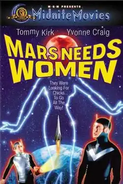 Mars Needs Women is a 1968 independently made American made-for-television science fiction film from Azalea Pictures.[2] The film was produced, written, and directed by self-proclaimed schlock artist/auteur Larry Buchanan, and stars Tommy Kirk, Yvonne Craig, and Byron Lord.[3] The film was released in first-run syndication by American International Pictures without a theatrical release.