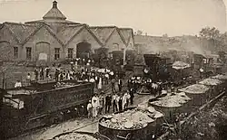 Martinsburg became a center of the railroad industry and its workers. The Great Railroad Strike of 1877 began July 14, 1877, in this city at the Baltimore and Ohio Railroad Martinsburg Shops.[12] After several unsuccessful attempts to quell the protests, Governor Henry M. Mathews called for federal troops. By the time these troops had restored order, the protest of the rail company had spread across the country.[13]