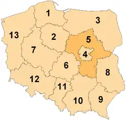 8. ^ "Result of voting in European Parliament election 2024 – Constituency no. 5". pkw.gov.pl. National Electoral Commission. Retrieved 10 June 2024.