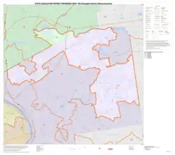 The current district geographic boundary overlaps with those of the Massachusetts Senate's 1st Hampden and Hampshire district and Hampden district.[7]