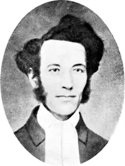 The ship carrying Goethe and his wife from London to Sydney travelled via Melbourne where it spent 32 days before arriving in Sydney on 19 March 1850. In April 1850, Goethe became a teacher of mathematics and languages at Lang's Australian College; he was also licensed to preach.[8] As well as teaching, Goethe conducted religious services in German and French[6] and, on 8 September 1850, gave the first service in German in Sydney.[9] Lang ordained Goethe on 9 October 1850.[10]