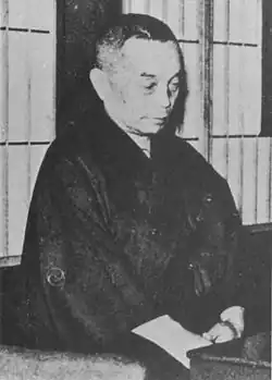 A special Posthumous Meijin (追贈名人, Tsuizō Meijin) title was given to Sankichi Sakata in 1955 by the Japan Shogi Association after his death in 1945.[17] Sakata, a folk hero for the Osaka area, was known during his heyday for his brilliant, inventive playing but was prevented from becoming a normal Meijin by circumstances.[18] Sakata is the only person to receive this title.