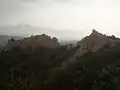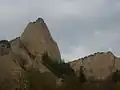 The area around Melnik is strikingly eroded, particularly the enormous area of cliff that serves as a backdrop to the town. This area, covering some 17 km2 near Melnik, Kurlanovo and Rozhen, has been called the Melnik Earth Pyramids or Melnik Badlands. The hills in this area can rise up to 100 metres (330 ft) high.[7] The unique formations, which can resemble giant mushrooms, ancient towers, and obelisks, were formed when heavy rain eroded the sand and clay the hills are composed of.[7]