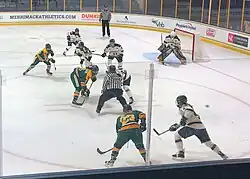 An NCAA Division I women's ice hockey game between Merrimack and Vermont.