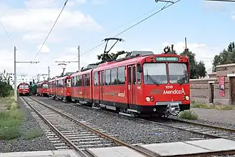 The Metrotranvía Mendoza (Spanish for Mendoza Light Rail or fast tramway) is a public light rail transport system for the city of Mendoza, Argentina, served by articulated light rail cars operating on newly relaid tracks in former-General San Martín Railway mainline right-of-way.