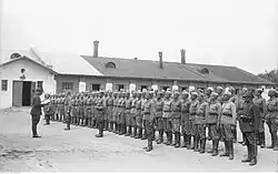 During World War I, it was occupied by Germany from 1915 to 1918. In 1916, the town was renamed to Mińsk Mazowiecki. In 1918, Poland regained independence and control of Mińsk. During the Polish–Soviet War, it was briefly occupied by the Russians on 16 August 1920, and then recaptured by the Poles the next day.[3] On 18 August 1920 Marshal Józef Piłsudski stayed in the town.[3] In the interbellum, the town enjoyed great development, and in 1937 the first electric train arrived. The 7th Lublin Uhlan Regiment was stationed in Mińsk Mazowiecki in the interbellum, and nowadays there is a museum dedicated to the unit in the town.