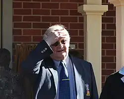 Abney-Hastings had two sons and three daughters with his wife, Noelene Margaret (née McCormick; married 1969).[8] His eldest son, Simon, held the courtesy title Lord Mauchline until his father's death on 30 June 2012.[9] Until his death, the 14th Earl was one of the seven co-heirs to the Barony of Grey de Ruthyn.