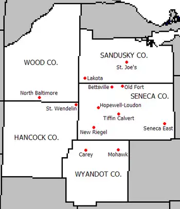 11. ^ Montgomery, John (February 2, 2013). "Four local schools to be part of new SRL". Tiffin Adviser-Tribune. Retrieved February 4, 2013.