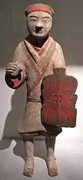 Han military official. The "Wuguan"(武冠) hat with pheasant-tail decorations denominates martial status.[1][2]