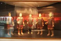 Although the chariot started losing prominence around the late Warring States period, it remained in use into the Han era until the Xiongnu war of 133 BC when they proved too slow to catch up to an all cavalry force.[26] However chariots were still used as defensive pieces several decades later.[27]