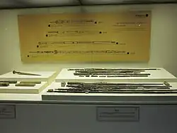The jian was mentioned as one of the "Five Weapons" during the Han dynasty, the other four being dao, spear, halberd, and staff. Another version of the Five Weapons lists the bow and crossbow as one weapon, the jian and dao as one weapon, in addition to halberd, shield, and armour.[35]