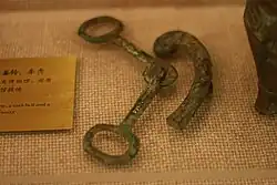 Recent archaeological finds demonstrate similarities between horse burials of the Shang and Zhou dynasties with the steppe populations in the west, such as the Saka and Wusun.[18][19] Other possible cultural influences resulting from contact with these Iranic people of Central Asia in this period may include fighting styles, head-and-hooves burials, art motifs and myths.[18]