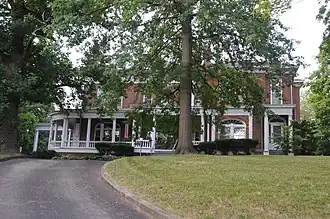 Miller-Porter-Lacy House, also known as the Lacy House, is a historic home located at St. Joseph, Missouri. The original section was built in 1883, as an Italianate style brick farmhouse. It was enlarged and remodeled in 1902 by the architect Edmond Jacques Eckel (1845–1934) in the Colonial Revival / Georgian Revival style. It is a large brick dwelling with a low hipped roof. It features Tuscan order columned porches and a porte cochere. Also on the property is a contributing carriage house and croquet and tennis court sites.[2]: 3–4