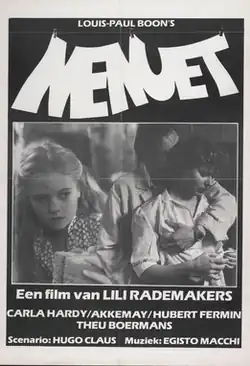 Menuet is a 1982 Belgian-Dutch drama film directed by Lili Rademakers. The film was selected as the Belgian entry for the Best Foreign Language Film at the 55th Academy Awards, but was not accepted as a nominee.[1]