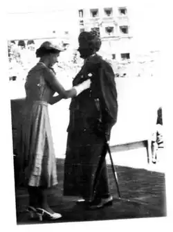 Queen Elizabeth II formally presenting Sultan Mohamoud Ali Shirreh his honors (Aden, 1954)[20]