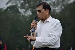 In May 1972, Mohun Bagan toured to newly independent Bangladesh to play exhibition matches, where they defeated Dhaka Mohammedan in their first match, but lost to Shadhin Bangla.[67] Mohun Bagan did recruit a number of young players in 1974 and 1975 so as to steer the team back to success. Subrata Bhattacharya, Prasun Banerjee and Narayanswami Ulaganathan made the team in 1974 and in 1975, Compton Dutta and Dilip Palit joined. By 1976 Mohun Bagan assembled their best team in years under the helm of Chandra Madhab Roy with the inclusion of a host of players from their two local rivals, including the attacking brothers–Mohammed Habib and Mohammed Akbar, and Subhash Bhowmick.[68] Prasun's elder brother, P.K. Banerjee was employed for the managerial post after his immensely successful spell at East Bengal. Under him, 1976 turned into one of the best years in the club's history when Mohun Bagan won their first CFL and IFA Shield titles since 1969 and added Rovers Cup to their success. Most significantly, Mohun Bagan ended a seven-year wait to win the Derby in 1976 with a 17s header from Akbar, assisted by Ulanganathan. Along with Shyam Thapa, other iconic names like Sudhir Karmakar and Gautam Sarkar, who was affectionately called "Indian Beckenbauer", also joined Mohun Bagan in the following year.[69] With a domineering squad, Mohun Bagan yet suffered a shocking defeat of 1–0 against ITI team in the inaugural Federation Cup, which became the most prestigious title in the country, and also lost the first Derby of that year. But they successfully became the first club to win the "Triple Crown" – the IFA Shield, the Durand Cup, and the Rovers Cup, in that year and as per club traditions, they invited East Bengal for dinner.[64][70]