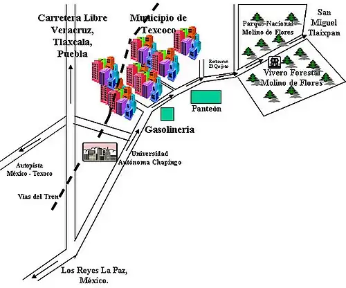 1. ^ Rivera, Nayeli (28 October 2001). "Que hay en Texcoco?" [What is there in Texcoco?]. Reforma (in Spanish). Mexico City. p. 2.