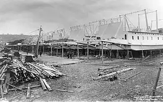 Moran sternwheelers under construction.