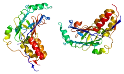 Mothers against decapentaplegic homolog 2, also known as SMAD family member 2 or SMAD2, is a protein that in humans is encoded by the SMAD2 gene.[5][6] MAD homolog 2 belongs to the SMAD, a family of proteins similar to the gene products of the Drosophila gene 'mothers against decapentaplegic' (Mad) and the C. elegans gene Sma. SMAD proteins are signal transducers and transcriptional modulators that mediate multiple signaling pathways.