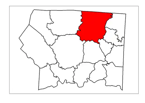 Geographically, Mount Airy Township occupies 43.1 square miles (112 km2) in northern Surry County, with its northern border being with the state of Virginia. Mount Airy Township is the most populated township of Surry County, accounting for nearly 35% of the total county population. There are multiple unincorporated communities located here, including Bannertown, Boones Hill, Flat Rock, Franklin, Holly Springs, Salem, Sheltontown, Slate Mountain, Toast, White Plains, and White Sulphur Springs.