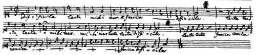 [He was] an arrogant ass and a simple-minded little wit of his profession ... finally when he was a little drunk, which happened soon, he started on about music. He sang a canon, and said: I have never in my life heard anything more beautiful ... He started. I took the third voice, but I slipped in an entirely different text: 'P[ater] E: o du schwanz, leck mich im arsch' ["Father Emilian, oh you prick, lick me in the arse"]. Sotto voce, to my cousin. Then we laughed together for another half hour.[16]