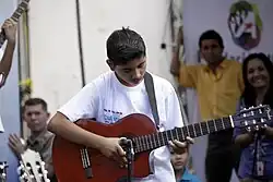 Salvadoran boy playing the guitar