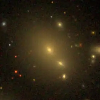 NGC 6041 is a giant elliptical galaxy[2] located about 470 million light-years away[3] in the constellation Hercules.[4] NGC 6041 has an extended envelope that is distorted towards the galaxy pair Arp 122.[2] NGC 6041 is the brightest galaxy (BCG) in the Hercules Cluster.[5][6] The galaxy was discovered by astronomer Édouard Stephan on June 27, 1870.[7]