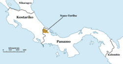 The Naso, who now live in the province of Bocas del Toro, Panama, are for the most part very poor subsistence farmers who supplement their earnings with the sale of the agricultural products (cocoa, oranges, plantains, etc.), animals (pigs, chickens, ducks, etc.), lumber (Cordia alliodora, Cedrela odorata, etc.) and some handicrafts which they transport to the relatively nearby city of Changuinola (population 30,000, two hours down river by raft or dugout canoe). While the Naso are isolated in geographic terms and receive few visitors to their communities, they are for the most part bilingual (Naso and Spanish), wear Western clothing, and many among them have converted to evangelical Protestant religions.[4] The Costa Rica branch has been successful in gaining United Nations financial support to build tourism facilities including hostel/cabin housing with plumbing and improvement to trails.[5]