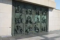 It includes the third-largest bronze rider statue in the world,[1] of Jan Žižka, who defeated the Catholic forces led by King Sigismund in 1420 at the Battle of Vítkov Hill. The Monument also includes the Ceremonial Hall, an exhibition entitled Crossroads of Czech and Czechoslovak Statehood, the Tomb of the Unknown Soldier and other exhibition halls.