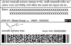The National Identity Card (Bengali: জাতীয় পরিচয়পত্র) or NID card is an identity card issued to every Bangladeshi citizen upon turning 18 years of age by Bangladesh Election Commission (EC). The NID is also a biometric, microchip embedded smart identity card. Bangladeshi citizens are required by law to possess a NID for multiple essential public services & private services in Bangladesh. Initially, paper-based laminated NID cards were issued in 2006. Then, the paper-based laminated NID cards were replaced by the Smart NID cards in 2016. This was done to ensure security for the cardholder as well as prevent counterfeiting and fraudulence. Bangladesh government provides the Smart NID card with zero cost[4][5][6] for all above 14 years Bangladeshi citizens.[7]