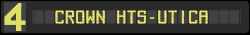 Newer rollsigns on R40 up to the R68A (including the former rollsigns on the R44 and R46 that now have LCD displays) have the route's bullet on the left side, and the two destinations on the right side. A rollsign on an R68 D train may read: