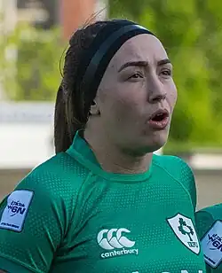 When she got her first Irish cap, against Canada, in the Autumn Internationals of 2016, it was also the first Irish senior cap for a female member of Tullamore Rugby Club.[4]