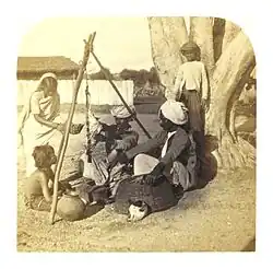 An enhanced image of Hindoo Butcher shop in Hyderabad, India circa 1862