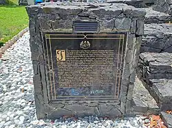 "This monument symbolizes the pinnacle of successful for the construction of the North–South Expressway that connects Bukit Kayu Hitam bordering with Thailand in the North to Johor Bahru in the Causeway bordering with Singapore in the South. The construction of the 848km expressway, across the peat swamps and forests and hill untapped granite hills, is an amazing achievement. Also impressive is the pragmatic way in which the combined efforts between the public and private sectors has resulted in this achievement. The expressways is the result of joint efforts of the Malaysian Highway Authority, a statutory body, which has been planned early and begin construction, with the Projek Lebuhraya Utara-Selatan Berhad (PLUS) (North–South Expressway Project), a private company that was awarded concessions to finance, design, construct, operate and maintain the expressways. Such efforts shows an improvement visions into a reality after across a variety of challenges that threaten to stop. It acknowledged the success of the Government and represents a national effort funded and operated successfully by Malaysians. This monument also commemorates the efforts of leaders of the Government, public services, businesses, financial institutions, consultants, engineers and consultants, as well as contractors and labours, which has played an important role in facing their challenges and bring this project to a level of success. Those who use this expressway will be expected not only to enjoy the various parties in the construction efforts, but also can even appreciate this expressway contribution towards national development."