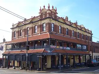 A small group of shops and cafes is located on Penshurst Street and includes the Willoughby Hotel, a local landmark building. The hotel was established in 1899 and was described as "one of the finest buildings in the northern suburbs".[3] It was almost demolished in 1940, but survived and had a major restoration in 1988.