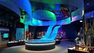 The Norwegian Olympic Museum shows the history of the Olympic Games in ancient and modern times, with a focus on the 1952 Winter Olympics in Oslo and 1994 Winter Olympics at Lillehammer. Olympic highlights are presented through interactive installations, multimedia presentations and stories related to authentic objects. In addition to the permanent exhibition, the museum also displays temporary exhibitions with a theme related to sports history and athletic achievements. Paralympics and the Youth Olympics have their own sections in the museum.[2]