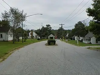 Oakdale Cotton Mill Village is a historic textile mill, mill village, and national historic district located at Jamestown, Guilford County, North Carolina, United States. The district encompasses 37 contributing buildings including the Logan Manufacturing Company complex built during the 1880s and 33 frame mill worker houses dated to the early-20th century. The factory complex consists of a three-story rectangular brick office, a one and two-story L-shaped brick factory with a four-story tower and five one-story brick warehouses, a small one-story board-and-batten blacksmith shop, and a polygonal brick smokestack.[2]