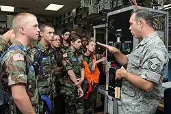 Air Force Reserve Master Sgt. Dan Bryant, a communication and navigation systems craftsman with the 910th Maintenance Squadron, explains the components of avionics equipment to Ohio Civil Air Patrol cadets.