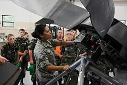 Air Force Reserve Staff Sgt. Jenelle Rodriguez shows the engine room to Ohio Wing Civil Air Patrol cadets.