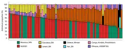 - 1) The first group (■), named Taforalt (TAF), going back to circa 15,000 BP and whose profile persisted well into the Neolithic, represents the autochthonous Maghrebi Upper Paleolithic substrate of hunter-gatherers (their genetic makeup is modelled as intermediate between contemporary Levantine foragers and sub-Saharan African populations).[8]