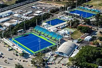 The Olympic Hockey Center is a sports venue in Deodoro, Rio de Janeiro, Brazil. The centre was built for the 2007 Pan American Games before being totally rebuilt for the Olympic Field hockey competitions at the 2016 Summer Olympics.[1] The Center was designed by the Brazilian studio Vigliecca & Associados, led by Arch. Ronald Werner Fiedler, Héctor Vigliecca and Luciene Quel.