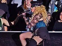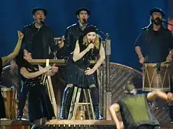 For the performance on the Blond Ambition World Tour, the singer wore the corset with conical-shaped cups designed by Jean Paul Gaultier, and did a choreography with a chair while a muscular dancer watched from afar.[95] Harrington opined it was one of the concert's numbers that "suffered from overly tight choreography that left little to chance, less to spontaneity and nothing to the imagination".[96] Two different performances can be found in Blond Ambition Japan Tour 90, taped in Yokohama, and in Blond Ambition World Tour Live, taped in Nice.[97][98] Eleven years later, the song's opening introduction was used as a brief interlude on the singer's Drowned World Tour.[99]