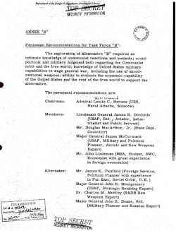 Team B included Army Major General James McCormack, John C. Campbell, retired Army Major General John R. Deane, Calvin B. Hoover, Air Force Colonel Elvin S. Ligon, Philip E. Mosely, and James K. Penfield.