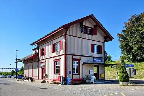 Ossingen is a railway station in the Swiss canton of Zurich and municipality of Ossingen. The station is located on the Winterthur to Etzwilen line,[3] within fare zone 161 of the Zürcher Verkehrsverbund (ZVV).[2]