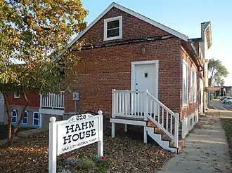 The Otto Sr. and Lisette Hahn House is a historic house at 626 Water Street in Sauk City, Wisconsin. The house was built between 1850 and 1857; Otto Sr. and Lisette Hahn, both German immigrants, bought it in 1866. The one-story brick house has a side gable plan, a popular vernacular layout in the mid-nineteenth century in which a building's gable roof ran parallel to the front facade. Otto Hahn was a harness and saddle maker by trade, and he added a workshop to the rear of the house to expand his business. Shortly after giving birth to her fifth child in 1871, Lisette drowned herself and the child in the Wisconsin River, leaving Otto to raise the remaining children. Hahn and his descendants owned the house until 1952, when the family sold it to Sauk City for use as a local history museum.[2]