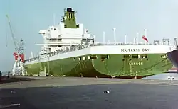 Container ships sailing for the company under the OCL banner were characterised by their green hulls with white topping, white superstructure and green funnels bearing the initials OCL in white letters. All OCL ships' names ended in Bay, such as Encounter Bay, Tokyo Bay, Liverpool Bay, Resolution Bay and Mairangi Bay. Subsidiary operations such as the Australia- Japan Container Line did not follow this trend, instead having names such as Arafura and Aotea. When OCL became P&OCL, there was a slight modification to the ships' colour scheme, the hulls becoming completely green and the OCL logo on the funnels being replaced with the P&O logo. Later the hulls and funnels were painted dark blue.. The naming convention was retained, and in June 2006 there were still a couple of Bay ships in the Maersk Line fleet.