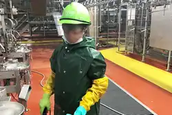 Photo of a minor cleaning a slaughterhouse in Grand Island, Nebraska.