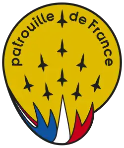 During the ten following years, four Escadres of the French Air Force (the 12e Escadre of Aerial Base 103 Cambray-Épinoy, the 4e Escadres of Aerial Base 136 Bremgarten; the 2e Escadre of Aerial Base 102 Dijon-Longvic and the 4e Escadre of Aerial Base 133 Nancy-Ochey)[4] perpetuated one after the other (tour à tour) the traditions of the Patrouille de France and contributed to patrol's international success. Nevertheless, in 1964, following budgetary restrictions, the patrol of Dassault Mystère IV was dissolved. Anxious not to have the designation of Patrouille de France disappear, the Minister of the Armies decided accordingly a couple of months later to adopt the Patrouille de l'École de l'Air.